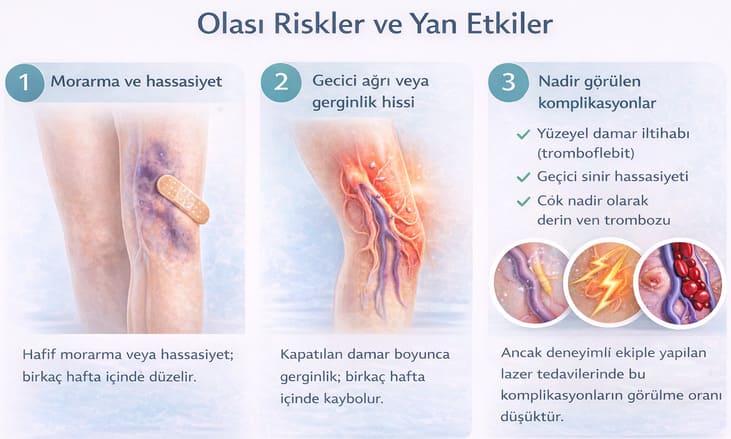 Bazı hastalar kapatılan damar boyunca hafif bir gerginlik veya çekilme hissi tarif edebilir. Bu durum genellikle geçicidir ve birkaç hafta içinde kaybolur.